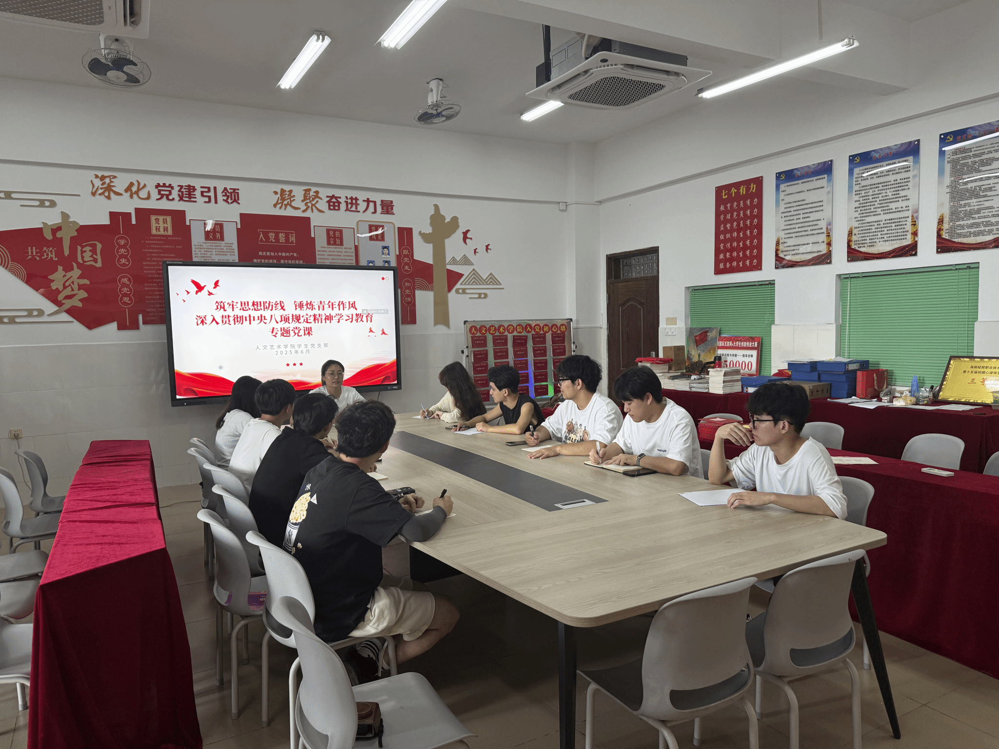 2025年6月6日,在英国上市公司365党总支的指导下,学生党支部书记讲授深入贯彻中央八项规定精神学习教育专题党课,全体学生党支部学生党员参加。