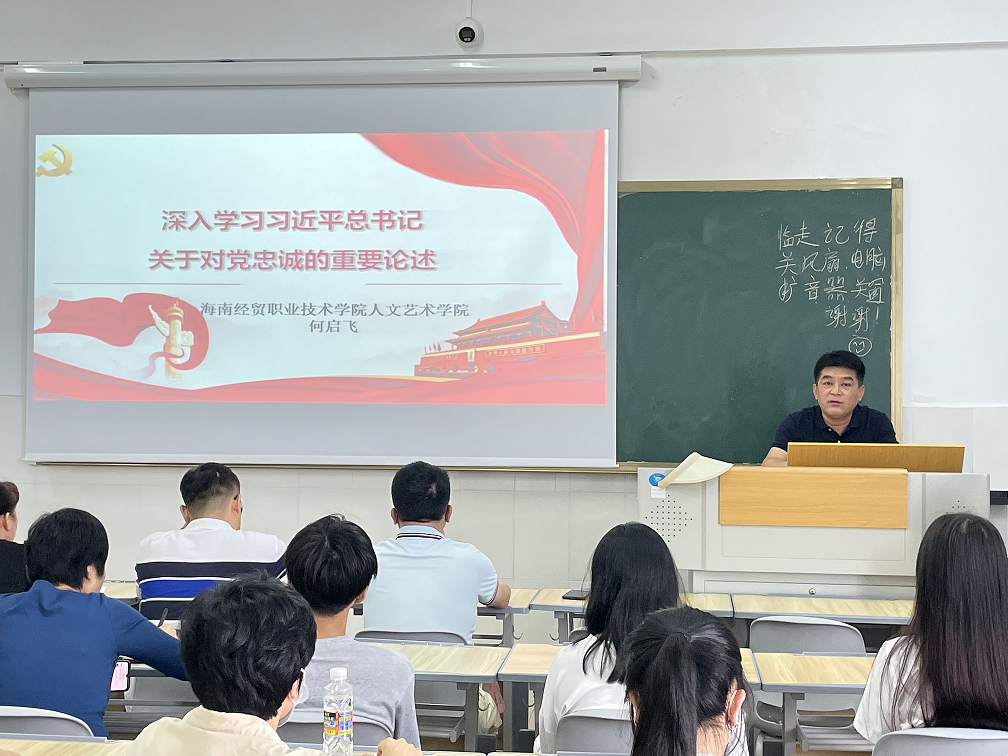 学生程嘉乐分享,对党忠诚就要听党话、跟党走、感党恩。加强政治理论学习,学好专业知识,在自贸港建设和学校建设中切实发挥自身的专业优势,了解海南自贸港相关政策,知道哪些事能做、哪些事不能做,拒绝“套代购”,自觉维护自贸港。