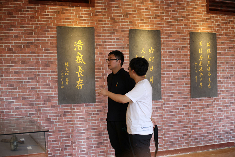 纪念塑像前,摆满了鲜花。在黄白相间鲜花的衬托下,烈士雕像显得尤为庄严肃穆。师生党员们参观了纪念展厅,了解了演丰人民革命斗争历史,学习了徐成章、徐天炳和吴克之三位先烈事迹,同学们无不为舍生取义的英烈精神所感动。在了解到长期的革命斗争过程中,演丰地区牺牲的革命烈士有542名,人民群众被杀害1000多人,被烧毁的房屋有800多间时,敬佩之情更油然而生。带着无比崇高的敬意,师生共同在烈士雕像前默哀,并献花致敬。