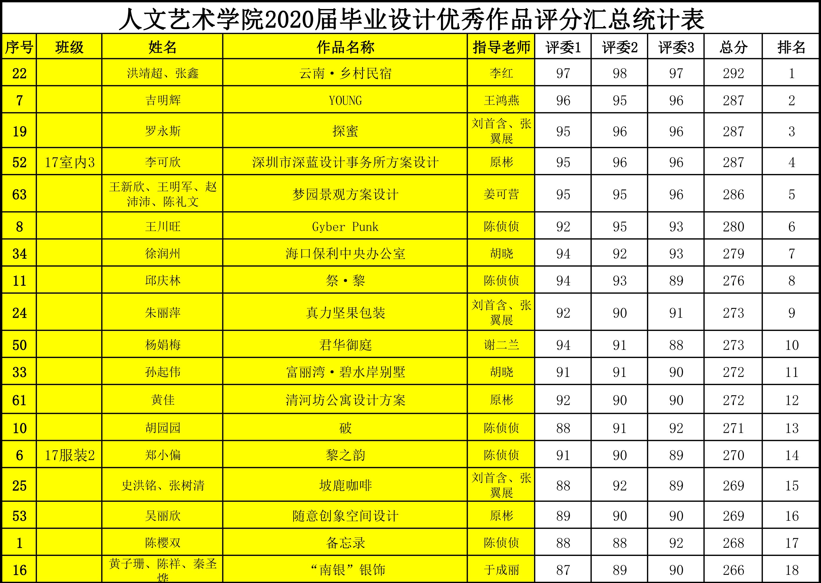 根据英国上市公司3652020届毕业设计展的有关要求,我院组织校内外专家对2020届毕业设计作品进行了评分,现将评分结果公示如下: