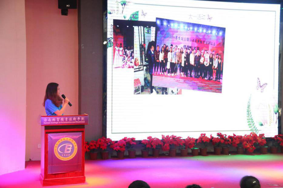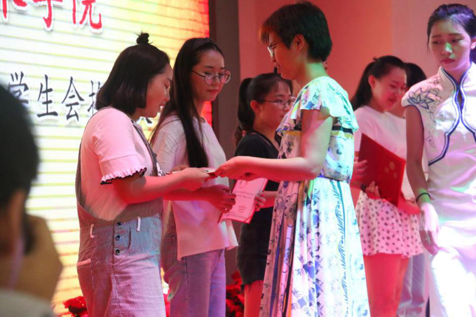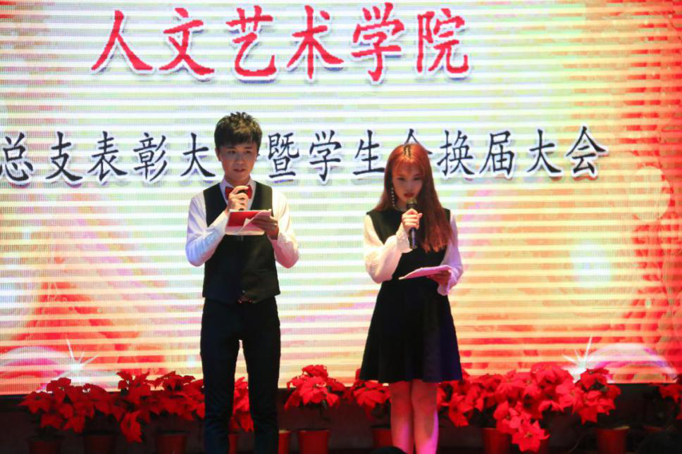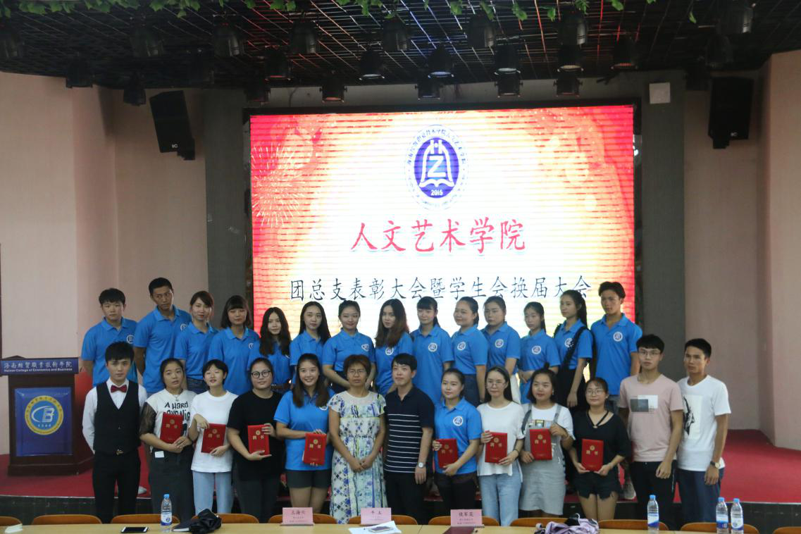 伴随着悠扬的团歌,本次大会拉开了序幕。首先,由学工办主任王海云、副主任侯军英为上届优秀团学干部颁发聘书。其次,由上届团总支副书记周玮作了自己上一年工作总结,之后学生会主席张致博对上届的学生会工作做了简要的回顾并总结。她们都表达了对下一届的团学干部们能够作出更好成绩的期望。接着,团总支负责人牛玉老师公布了本届我院学生会新干部成员名单。新一届学生会干部主要有:团总支副书记刘婉仪;主席团:唐蕊玲、林欣欣、何晓远;青协主席、副主席:周镜涛、刘梦勤;文体部部长、副部长:宋泳昕、陈果、桑玺婷;宣传部部长、副部长:唐雅玲、楼致远;组织部部长、副部长:沈露、何春秋;纪检部部长、副部长:陈莉、赵俊瑞;秘书部部长:孙怡丹。最后,由新一届团学干部轮流作述职报告并向17届的全体成员发出邀请,为所属部门纳新。新一届的团学干部成员纷纷表示将不负大家的期望,为人文艺术学生会的工作尽自己的最大努力。至此,本届团总支表彰大会暨学生会换届大会圆满结束。