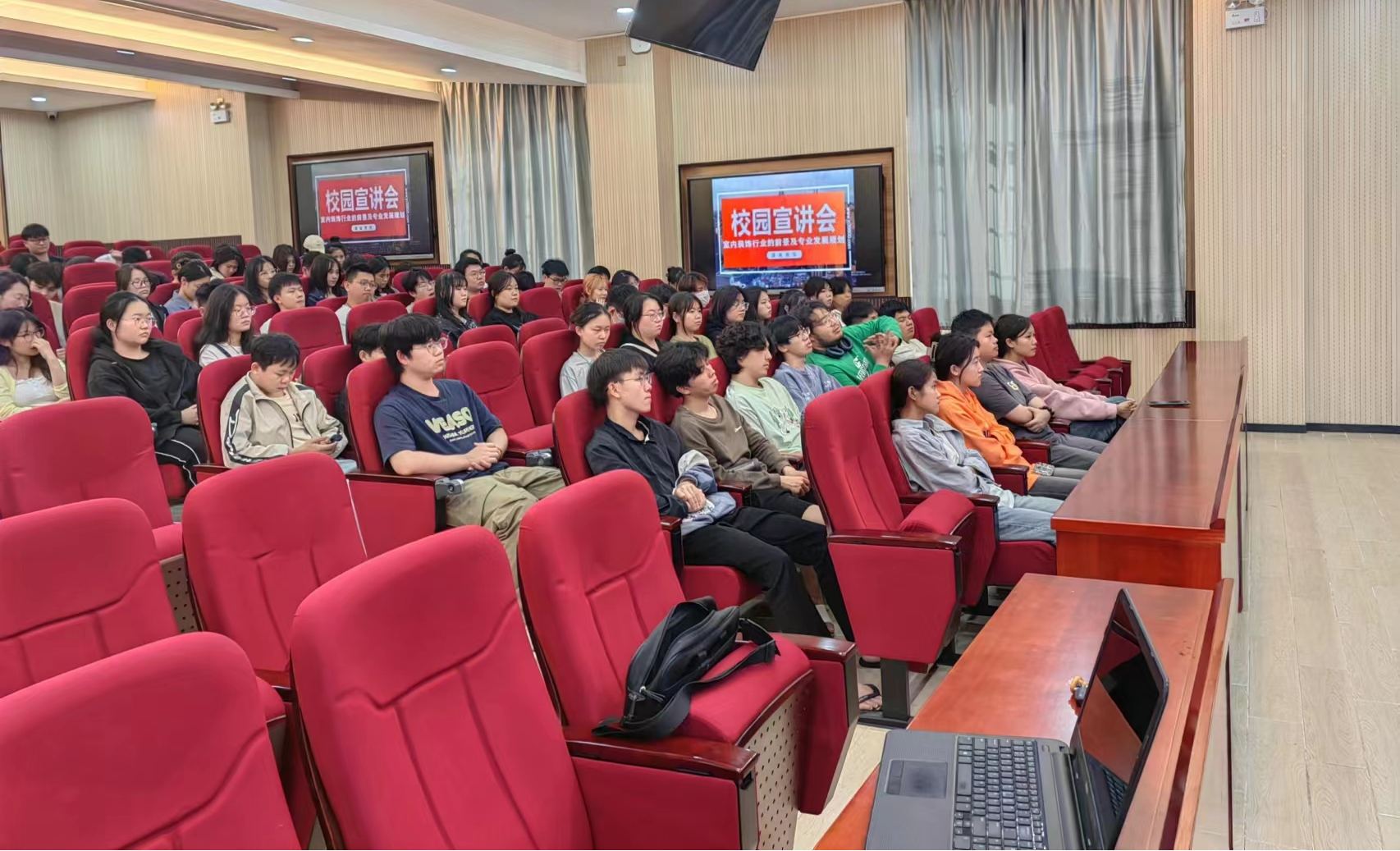宣讲会上,陈经理从行业角度对室内装饰行业、室内设计专业未来发展前景和本专业所必须具备的技能等方面进行解说,并勉励同学们在大学期间要珍惜青春年华,努力学好专业知识,练就过硬本领,提升干事能力,时刻准备迎接用人单位的挑选。