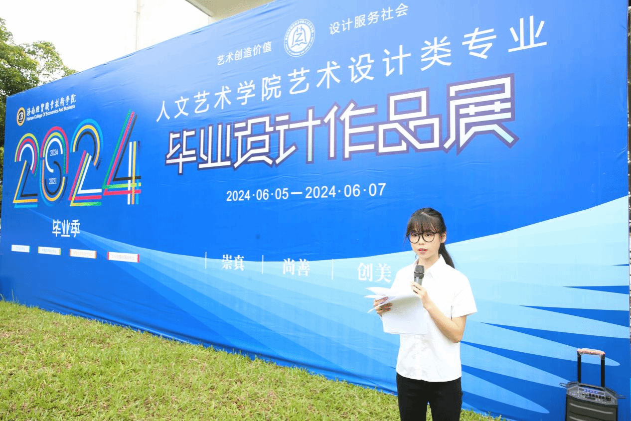 21级品牌设计2班的李青同学代表毕业生向给予无限关爱与支持的学院老师们表达最深切的感激之情。是老师们的悉心教导和耐心栽培,陪伴同学们在成长的道路上从青涩走向成熟,从迷茫找到方向。发言中,她回望过去,从初次踏入校园的懵懂,到今天自信地展示作品,一路走来充满了挑战与收获。他表示,同学们将牢记“笃学砺能,知行合一”的校训和秉持“崇真、尚善、创美”的院训,带着对社会的责任感,一步一个脚印,向着心中的目标不断前进,在各行各业中尽情施展创意和才华,不负母校、不负韶华。
