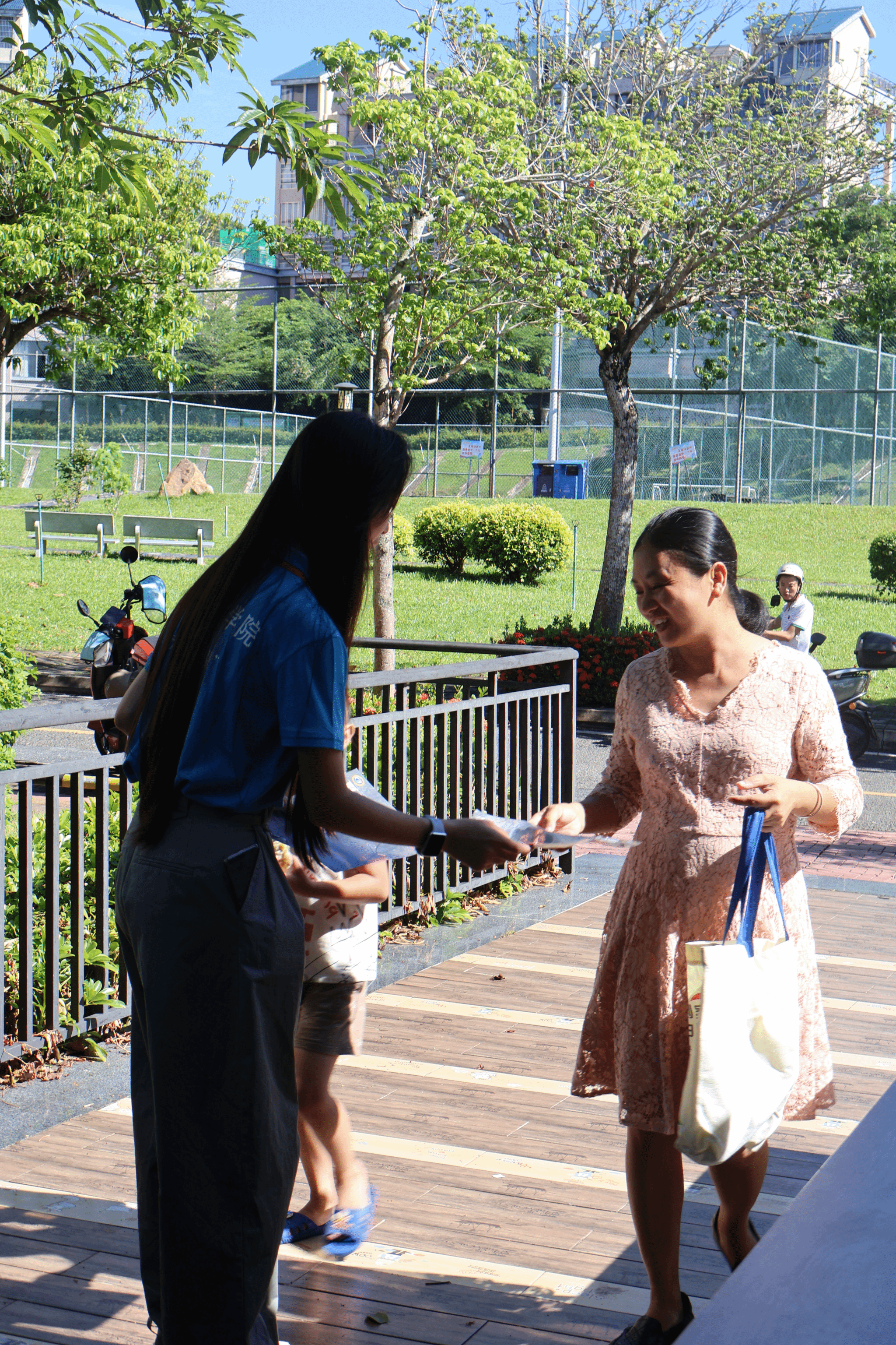 实践活动期间,助乡队还前往白沙县滨河路新时代文明实践基地(红色书榭),相应“万名大学生进千站”号召,参与了一场别开生面的“书香白沙——阅读有你‘伴侬成长·绿色阅读’”亲子阅读志愿者活动。这份跨越年龄与身份的关怀,不仅加深了实践队员对社会责任的认识,也让他们在实践中收获了成长的喜悦与满足。在活动现场,队员通过发放夏日防火、防范“套代购”等200份宣传单,引导群众注意个人与财产安全,助力自贸港建设。