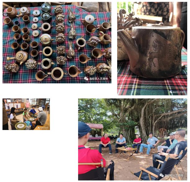 第二站,实践团参观了琼崖黎陶。从精巧的茶具到瑰丽的把壶,从古朴的壶具到镂空、雕刻精细的塑型设计,琼崖黎陶作品展示了匠人的才智与技艺,将传统黎陶土变成了非遗瑰宝,让成员们更加深刻地理解到黎陶、陶艺的无穷魅力,感受中华优秀传统文化与美育体验润物无声的完美契合。