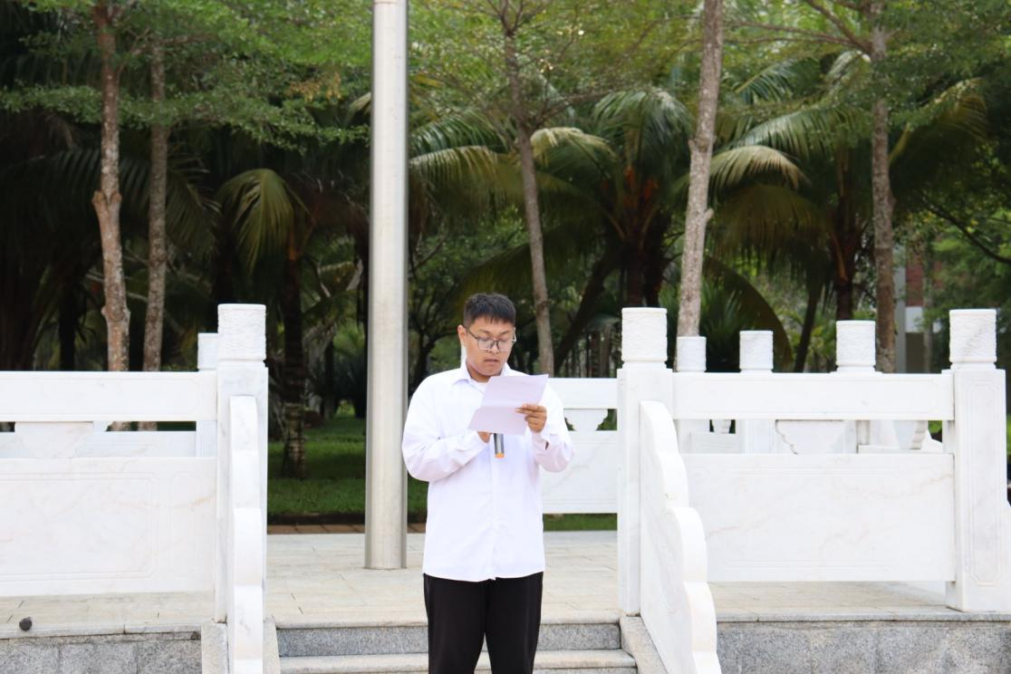 学生代表程嘉乐以“生在国旗下,长在春风里”为主题,号召同学们要牢固树立爱国主义情怀,学习党的光辉历程,传承红色基因,要时刻保持对祖国的忠诚与热爱,为祖国的繁荣昌盛而努力拼搏;要不断学习,不断充实自己,树立正确的三观,把握人生方向,为实现自己的人生价值而努力奋斗!