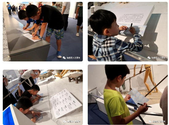 参观完展厅后,团队成员在服务台发放寻宝小册子,册子中印有简单的渔家文化知识点,小朋友们需要在展厅中找到正确答案填写在册子上,根据用时长短和正确率高低登记相应积分,“寻宝+鉴宝”与“捕鱼”两个活动积分相加,凭积分兑换对应等级奖品。