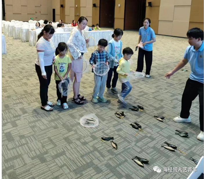 实践团协助家长和小朋友们在“捕鱼”