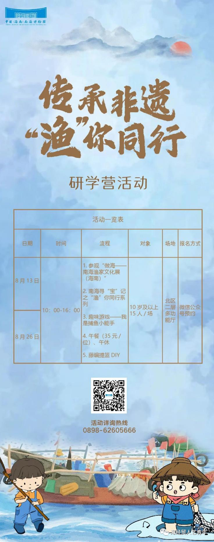 8月10日,实践团队再次前往中国(海南)南海博物馆,这一次是进行设计前的考察参观。“南海海洋知识青年宣传队”实践团成员此行的重点任务是为配合南海博物馆开展《传承非遗“渔”你同行——暑期系列社教活动》。充分利用所学的艺术设计知识,开始着手设计活动背景板、活动海报、寻宝小册子等。