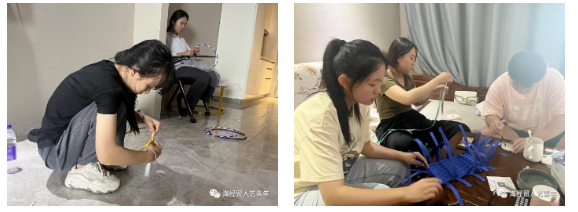实践团在练习编织技巧