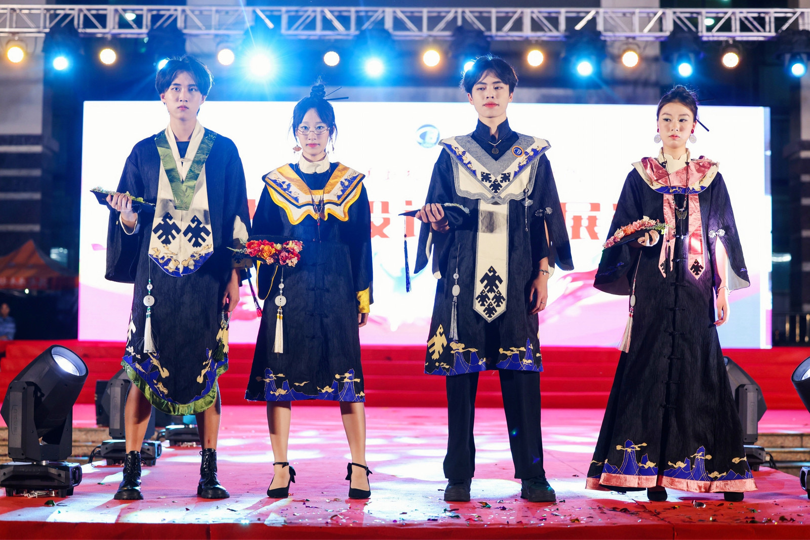 届服装与服饰设计专业毕业设计作品动态展演在海南经贸职业技术学院图书馆前广场举行,此次展演以《心传承·潮未来》为主题,围绕海南地域民族文化,立足新时代对高质量人才培养和落实立德树人根本任务要求,输出艺工融合、传承与创新教育教学成果的具体体现。