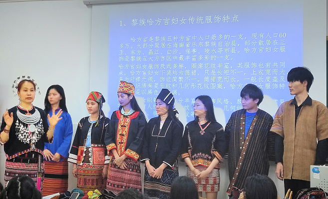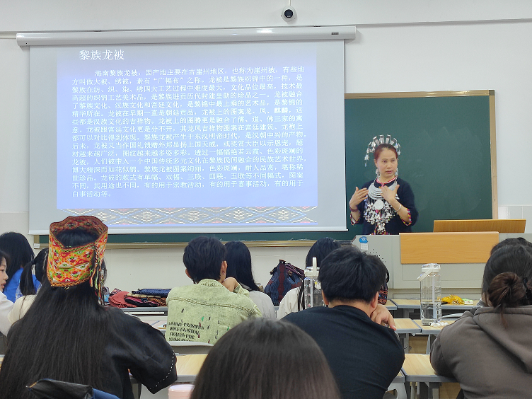 近日,英国上市公司365邀请南海工匠、拔尖人才、世界非物质文化遗产黎族传统纺染织绣技艺省级传承人陈丹老师,为师生讲授《海南民间服饰与纺染织绣》课程。陈丹身着黎族传统服饰,通过实物展示、理论授课、实践实操等方式展开授课。同学们兴致勃勃,下课后继续向老师请教,沉浸在非遗的世界中,久久不愿离开课堂。