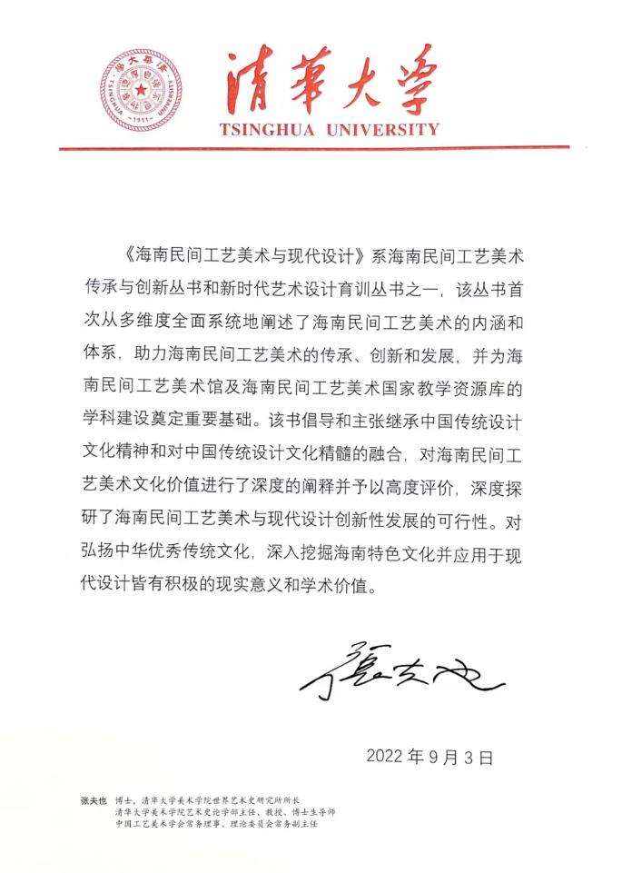 两套丛书,引发了对中国传统设计思维方式的思考,提供了对中国传统设计美学思想的借鉴,强调了对中国传统设计文化精神的把握,主张了对中国传统设计文化精髓的融合,体现了对海南民间工艺美术文化价值的肯定,从而第一次较为全面系统地提升了海南民间工艺美术和保护性传承、创造性转化、创新性发展及其新时代艺术设计育训的使用、审美、教育价值。这两套丛书的编著出版,是海南经贸职业技术学院作为海南省文化艺术职业教学指导委员会主任单位的责任担当,也是其响应弘扬中华优秀传统文化,深入挖掘海南特色文化,在推动传统工艺高质量传承发展中展现“海南职教作为”、服务“海南自贸港建设”、贡献“海南文化智慧”的责任自觉。