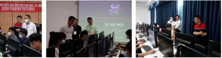 此次大赛获得中国室内装饰协会的大力支持,为赛事的有序平稳进行提供了切实的保障。为保证赛事公平、公正、顺利地进行,此次技能竞赛评委组由中国装饰设计研究院海南分院张浩华院长担任评委组组长,中国室内装饰协会设计专业委员会委员、海南省室内装饰协会设计委副主任邝道华,海南百会园邦城市设计顾问有限公司执行董事、高级建筑师傅后颖担任评委,竞赛完全按照国赛规程进行考核及评分。