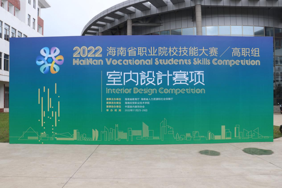 2022年11月25日、26日,由海南省教育厅、海南省人力资源和社会保障厅联合主办的海南省职业院校技能大赛(高职组)室内设计赛项在海南经贸职业技术学院顺利举办,此次赛事协办单位为中国室内装饰协会。根据赛程规定,选拔出来的选手将代表海南省高职院校参与由中国室内装饰协会主办的全国院校室内设计技能大赛(高职组)国赛。来自全省的六所主要高职院校的室内设计相关专业,共16支队伍报名参赛,因疫情影响,实际14组选手参赛。