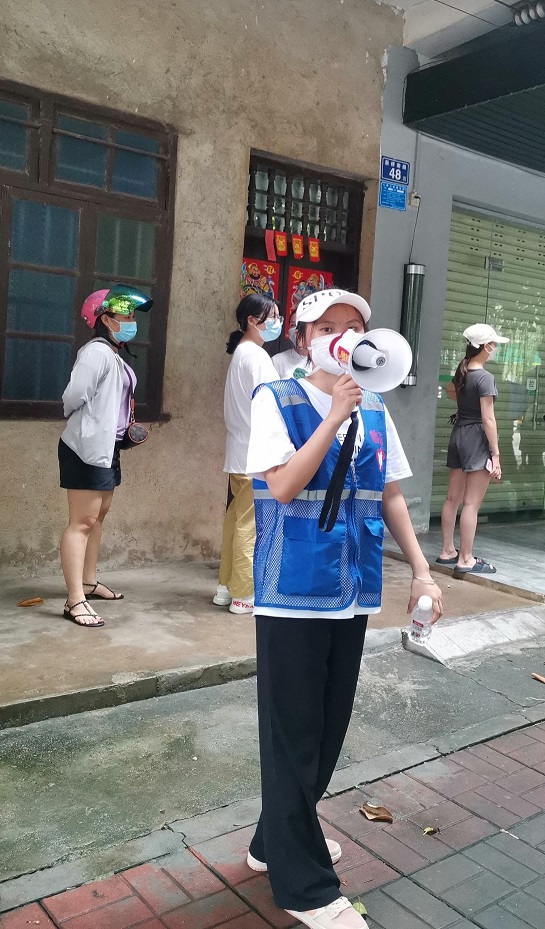 ▲2021级服装与服饰设计2班王美格在海口海南临高当志愿者维持秩序