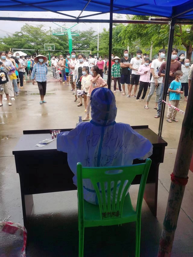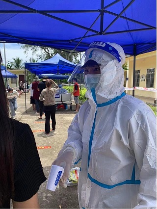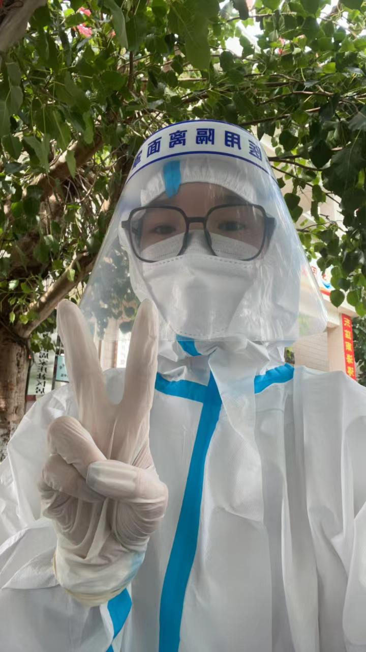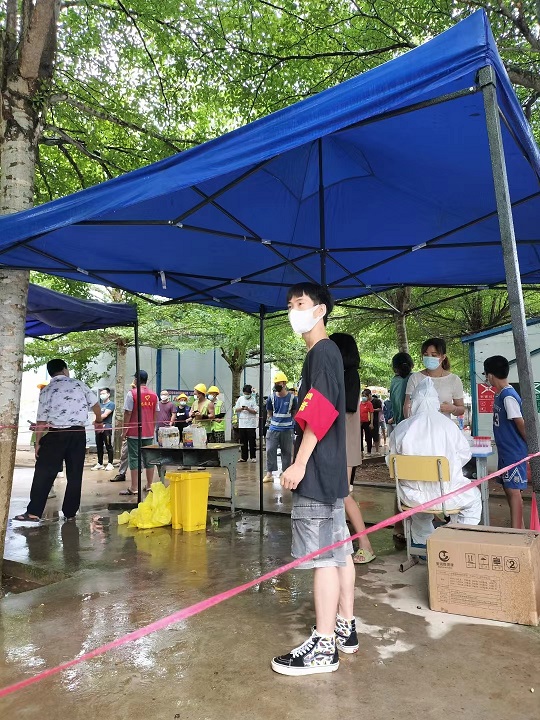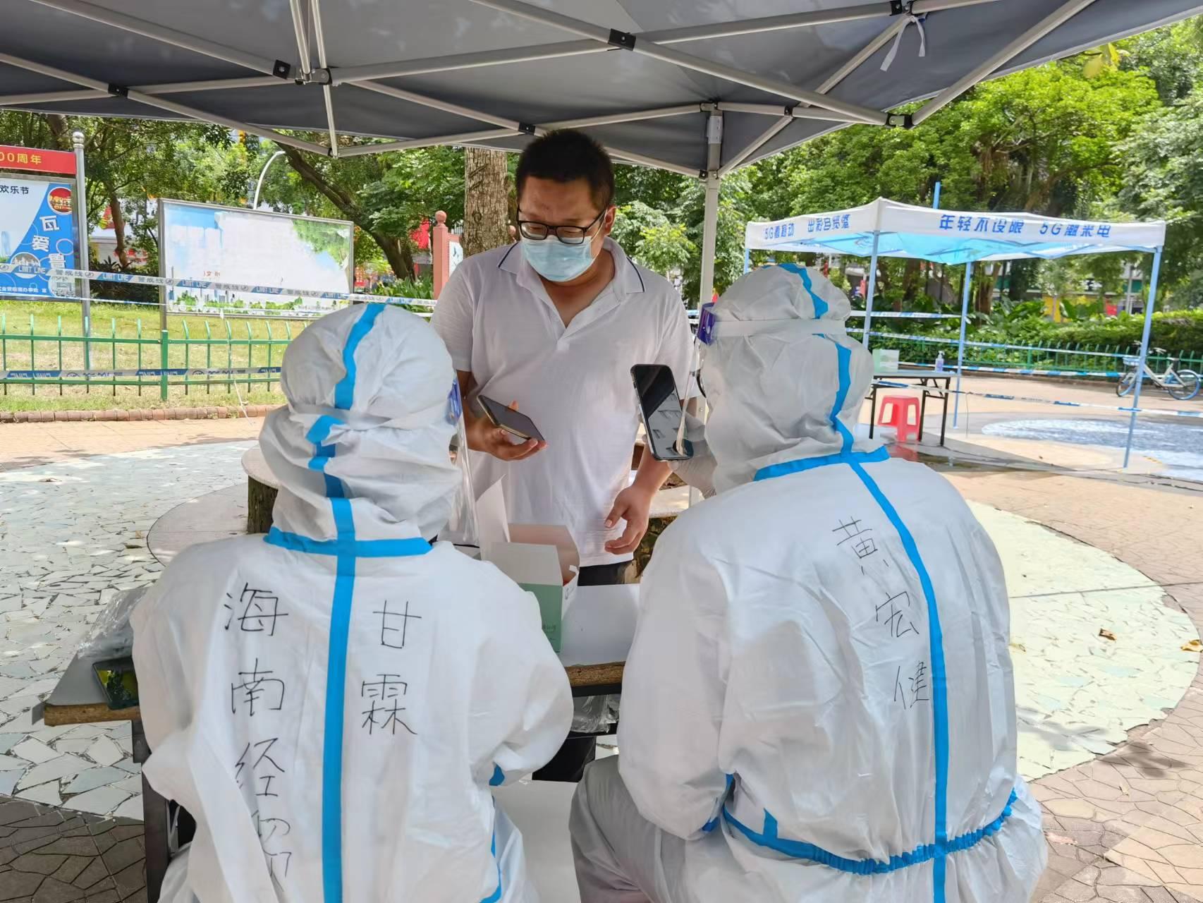 ▲21级室内设计2班朱子恒在海南省昌江县当志愿者协助核酸检验