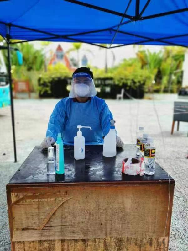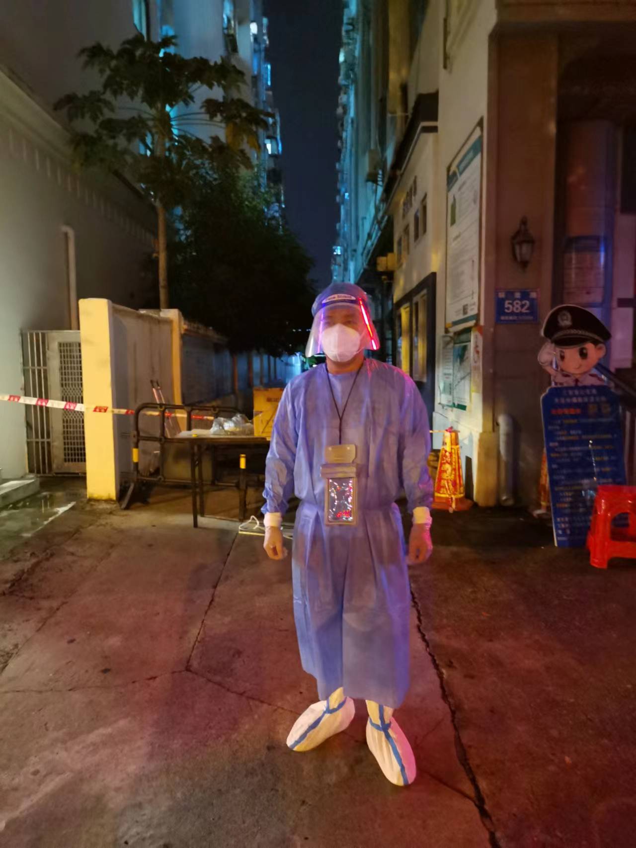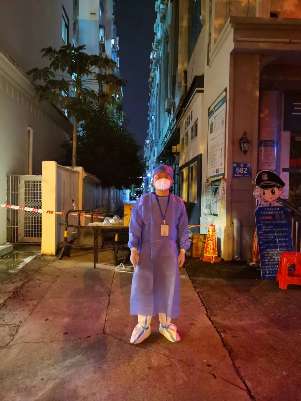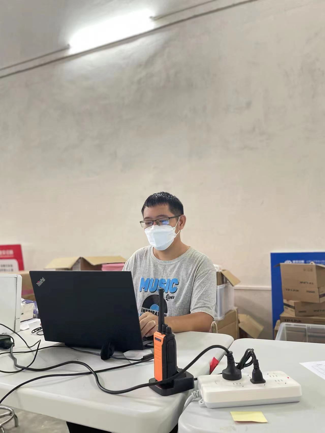 ▲21级室内设计2班朱子恒在海南省昌江县当志愿者协助核酸检验