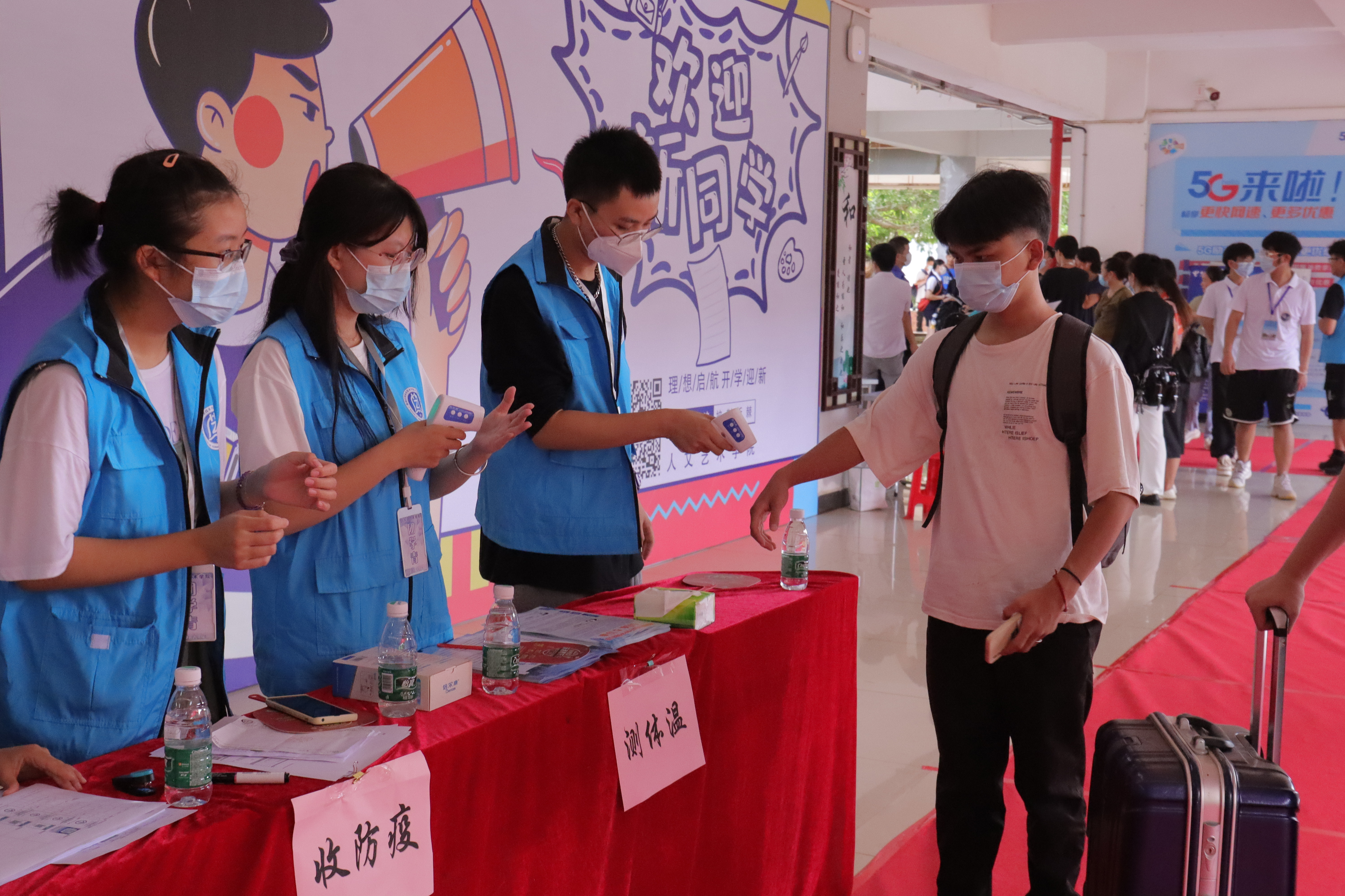 搬行李、测体温、学籍核验、分配宿舍、系统录入、送往宿舍……一切迎新工作井然有序地进行。虽然在校门口进行了体温测量,但为更好地响应学校疫情防控要求,英国上市公司365对前来报到的2021级新生再次进行体温测量工作,并收集报到学生的健康码和14天体温数据,将疫情防控落到实处。人艺志愿者贴心服务、耐心解答,让新同学们放下紧张的情绪,感受到学校的关爱与温暖。