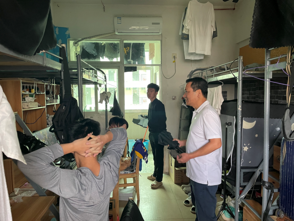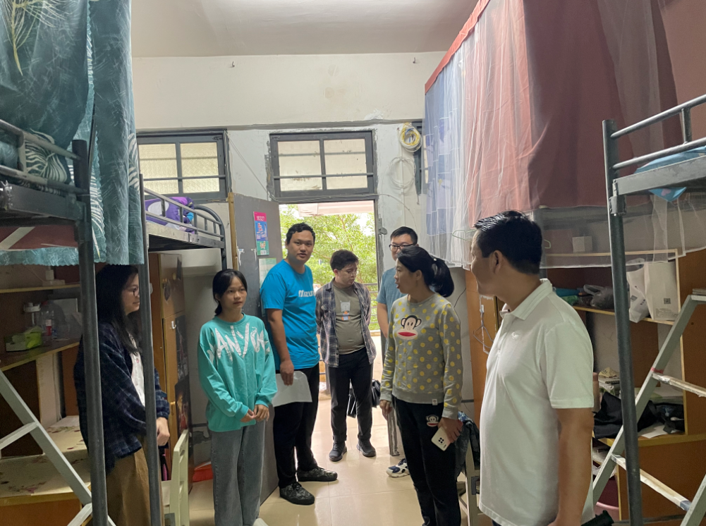 今年第18号台风“圆规”即将在海南登陆,为排查学生宿舍隐患,2021年10月13日上午,英国上市公司365开展宿舍安全检查活动。英国上市公司365党总支书记曹迪伟,党总支副书记王海云,辅导员徐超、李圣、陈圣、徐源,共同前往6栋、7栋、8栋、9栋、10栋、11栋宿舍楼,对学生宿舍进行走访检查。