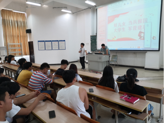 李圣老师对征兵政策法规进行解读,讲解了大学生入伍优待政策、退役大学生士兵安置和就业就学政策、参军入伍待遇、退役士兵就业安置、社会保障政策及大学生入伍流程等。
