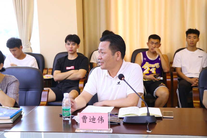 最后,曹迪伟书记做总结讲话。他表示,做好大学生征兵工作,是直接关系着我国国防安全的大事,对推动我国军队科学的发展有着十分重要的意义。参军入伍是热血青年锤炼品质,树立信仰,实现伟大抱负的有效途径。希望在座各位退役复学大学生,做到退伍不褪色、退伍不褪热、退伍不落伍,将军人的情怀和精神品质融入到校园生活中,做好大学生征兵工作的“宣传员”。同时希望在校大学生们能够积极报名应征入伍,为实现我国的强国梦、强军梦贡献力量。