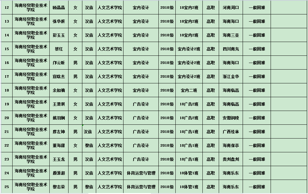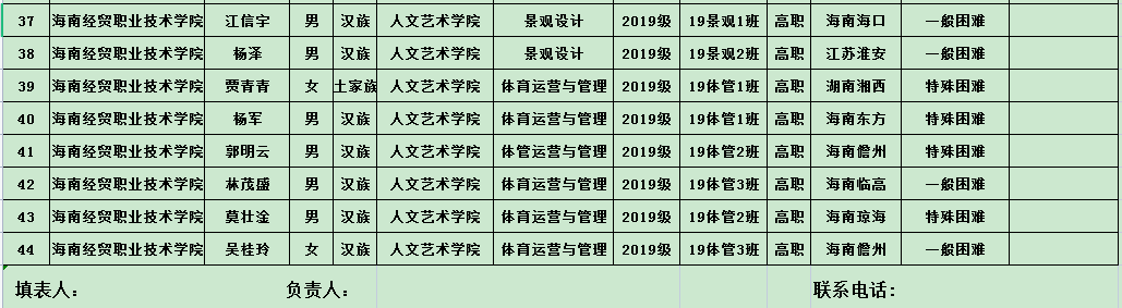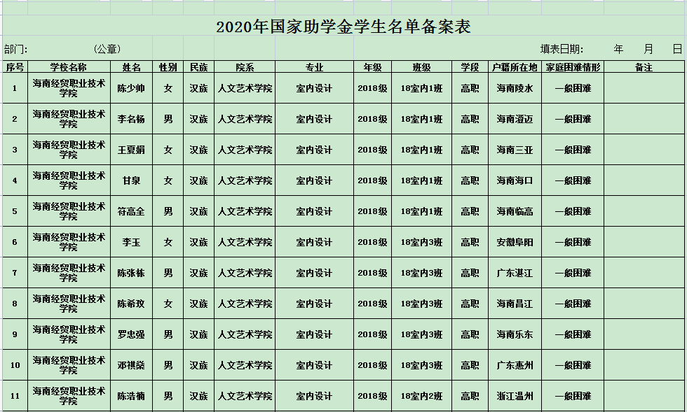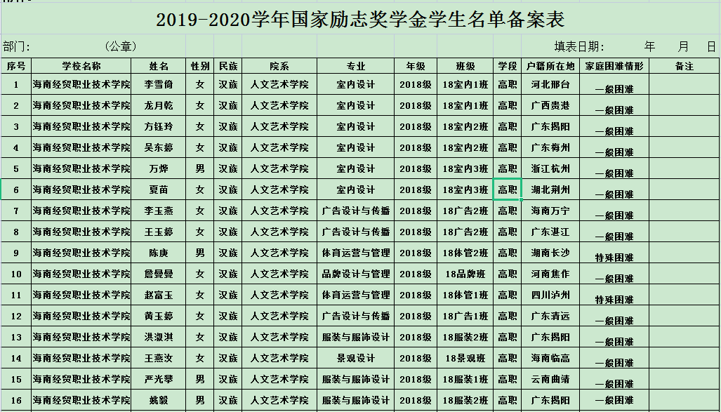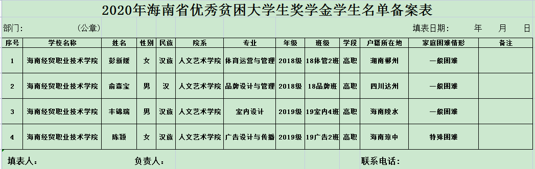 为了促进我院学生全面发展,鼓励学生刻苦学习,奋发向上,促进校风学风建设,我院根据《海南经贸职业技术学院“国家励志奖学金”管理实施细则》(2020版)、《海南经贸职业技术学院“海南省优秀贫困大学生奖学金”管理实施细则》和《海南经贸职业技术学院“国家助学金”管理实施细则》(2020版)评定办法,本着公平、公正、公开、民主的原则,现进行公示。