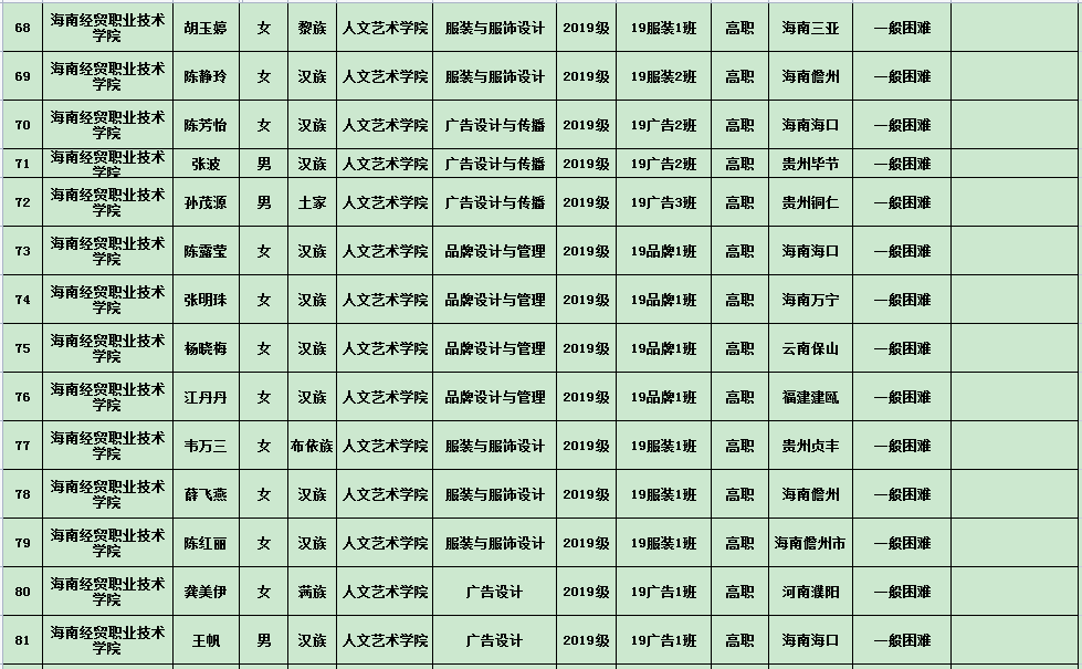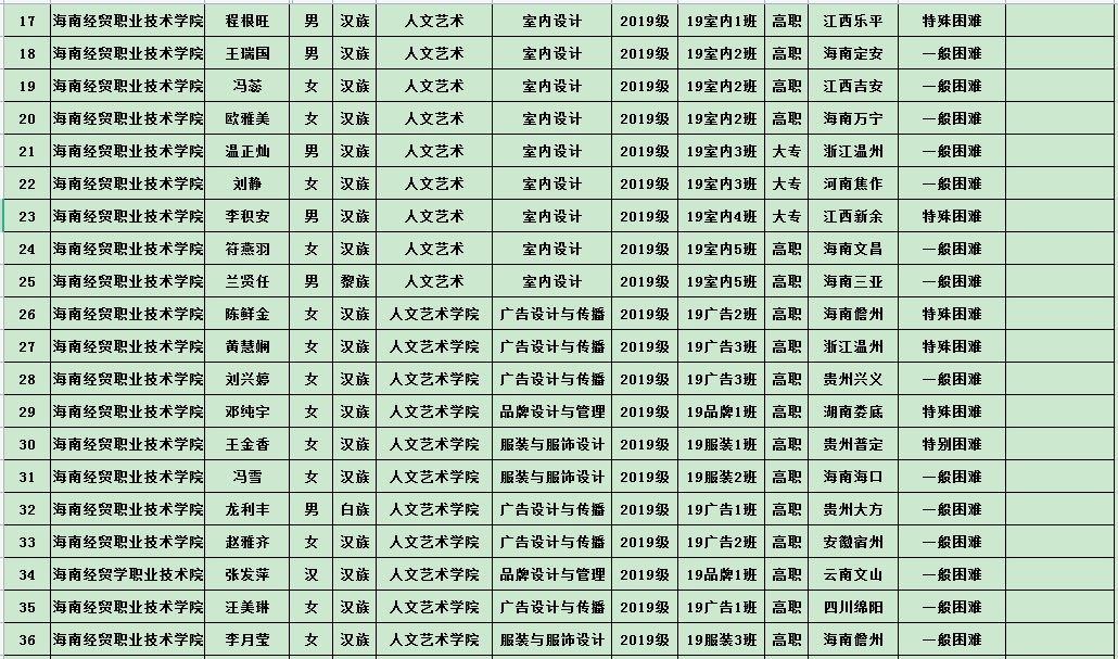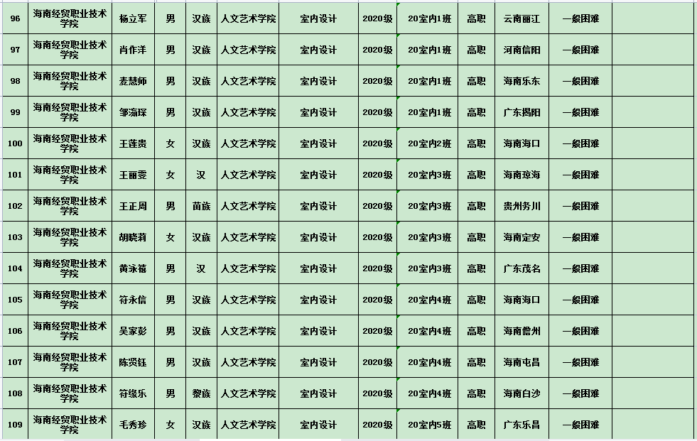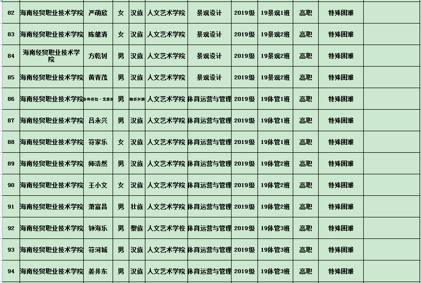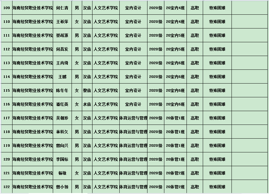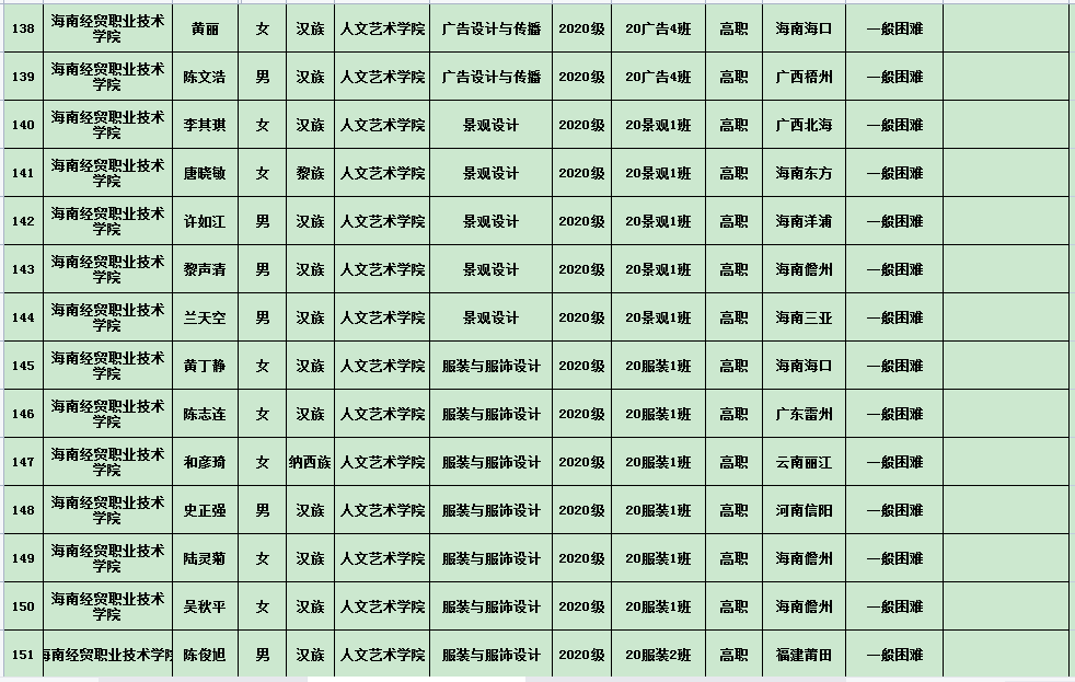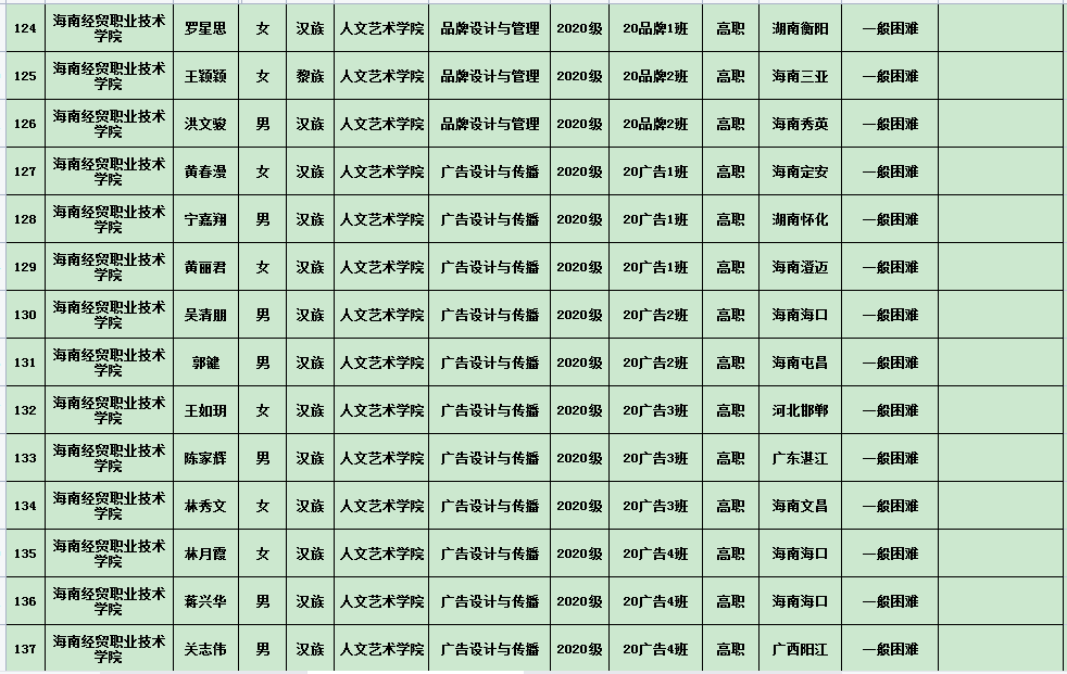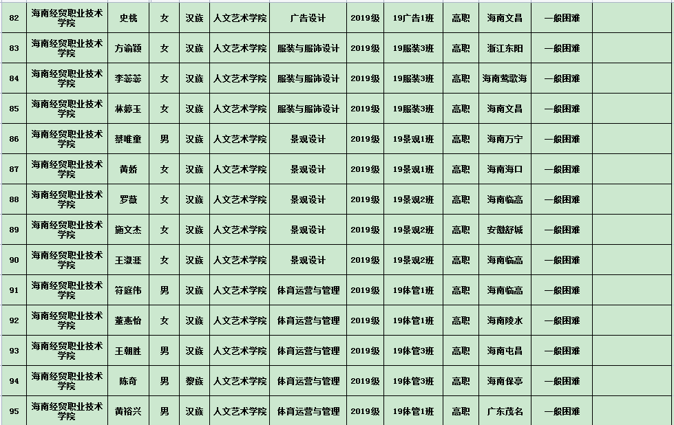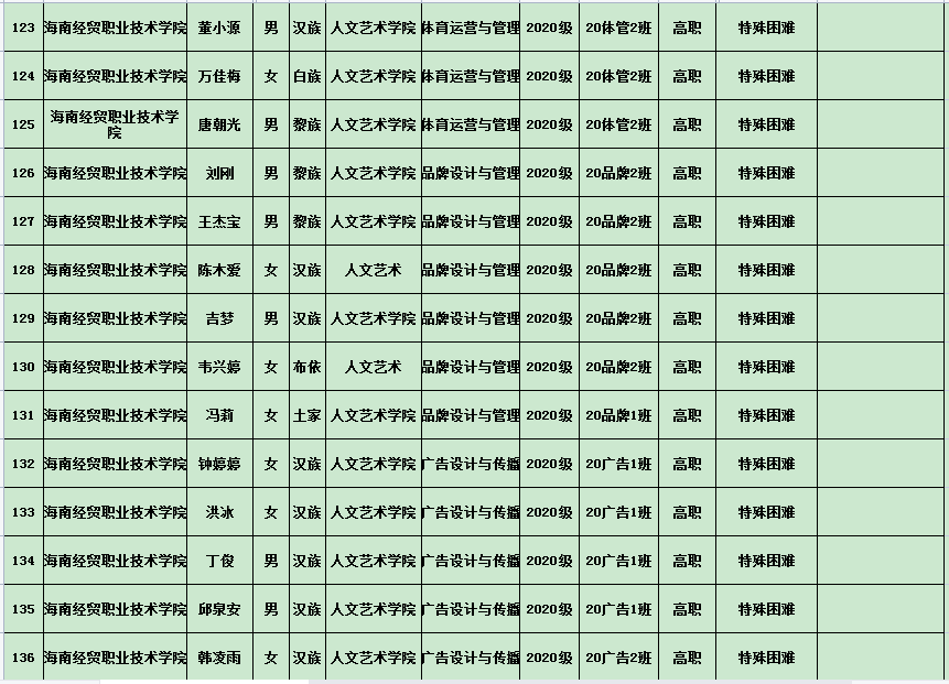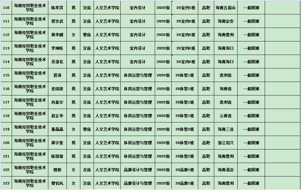 英国上市公司3652020年度国家励志奖学金、国家助学金及海南省优秀贫困大学生奖学金公示表(专科)
