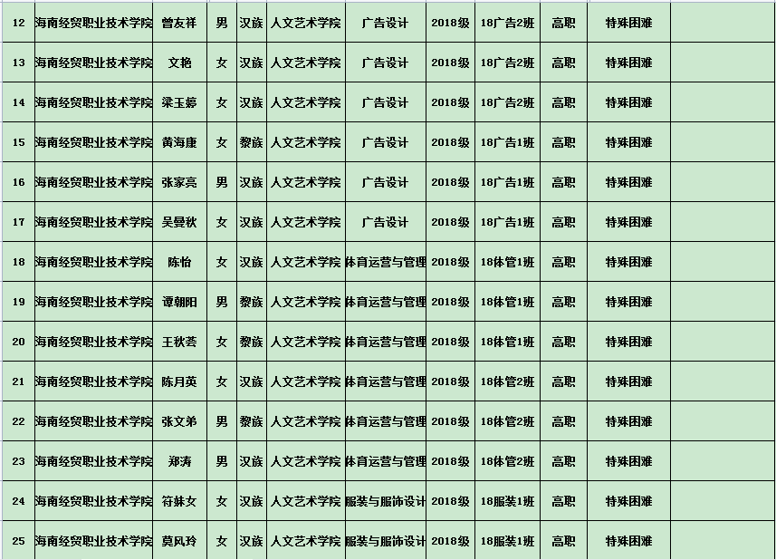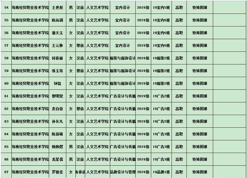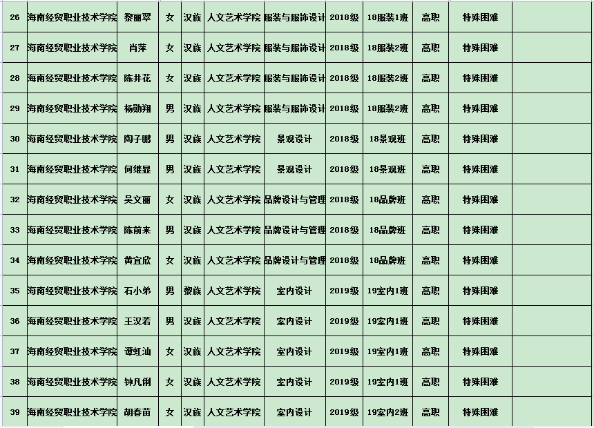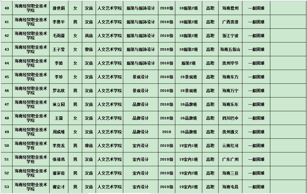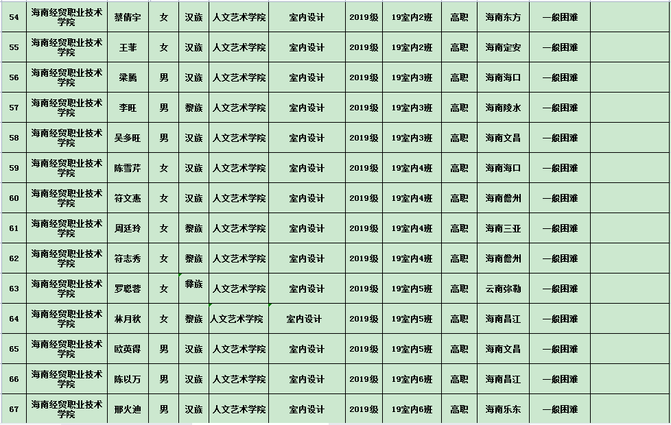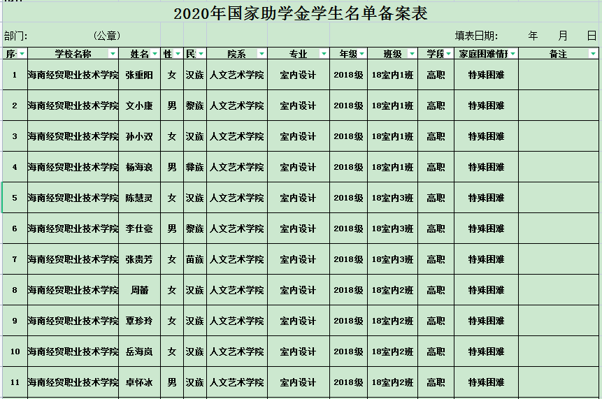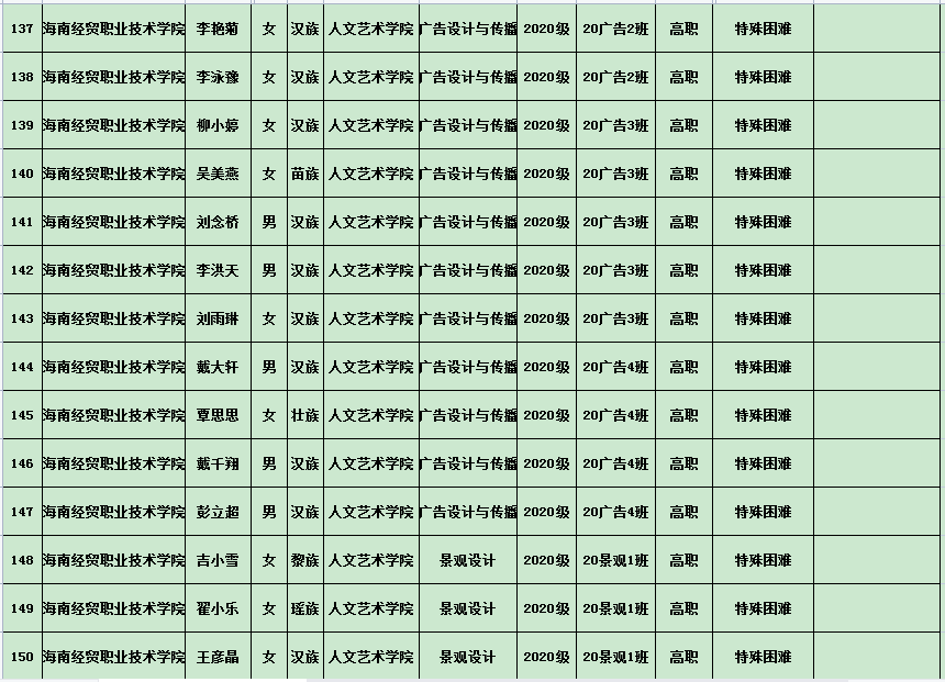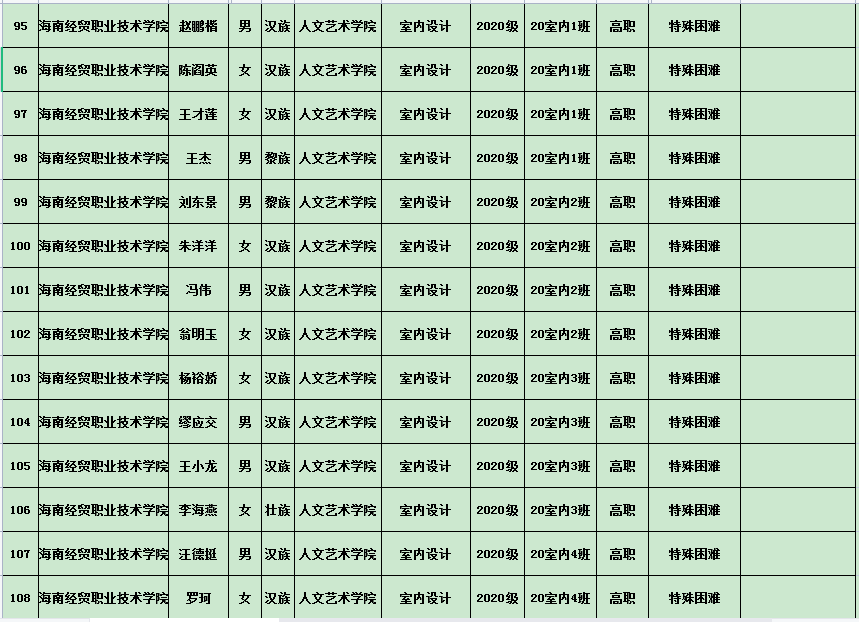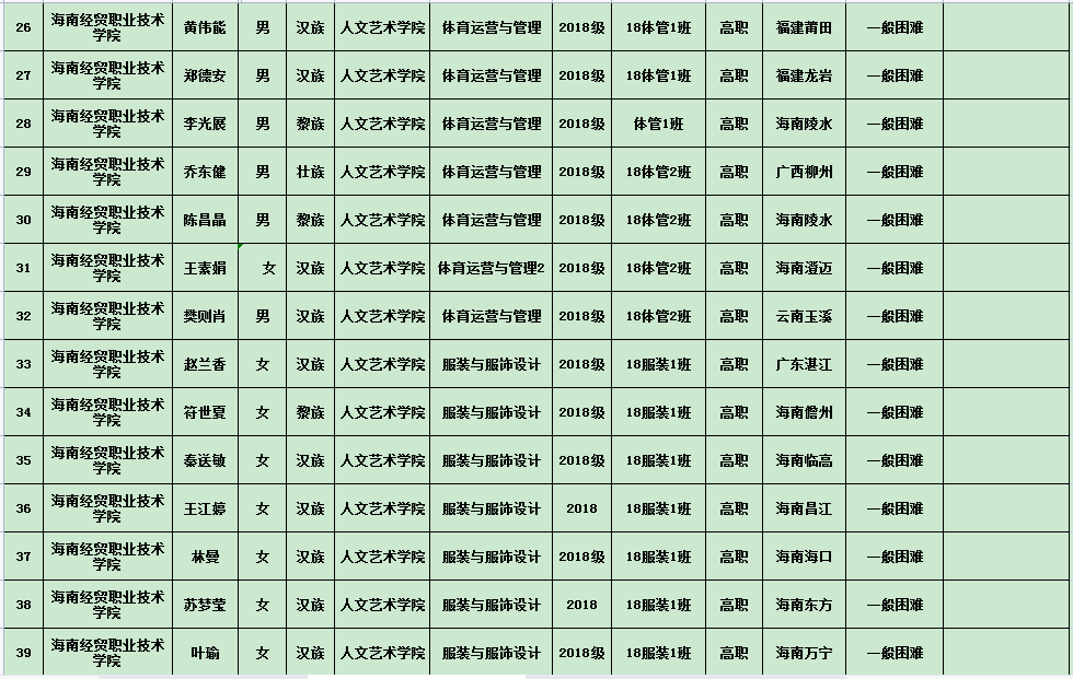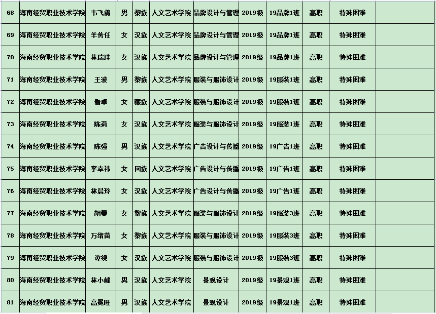 英国上市公司3652020年度国家励志奖学金、国家助学金及海南省优秀贫困大学生奖学金公示表(专科)
