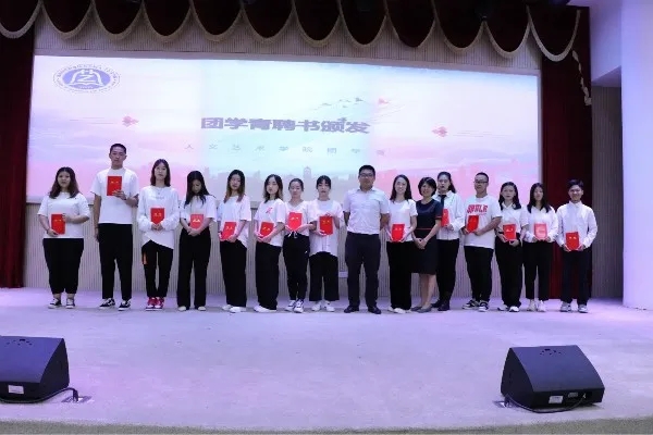 在颁发聘书环节中,由党总支副书记冯标山和学工办主任王海云为第5届团学青成员代表颁奖。