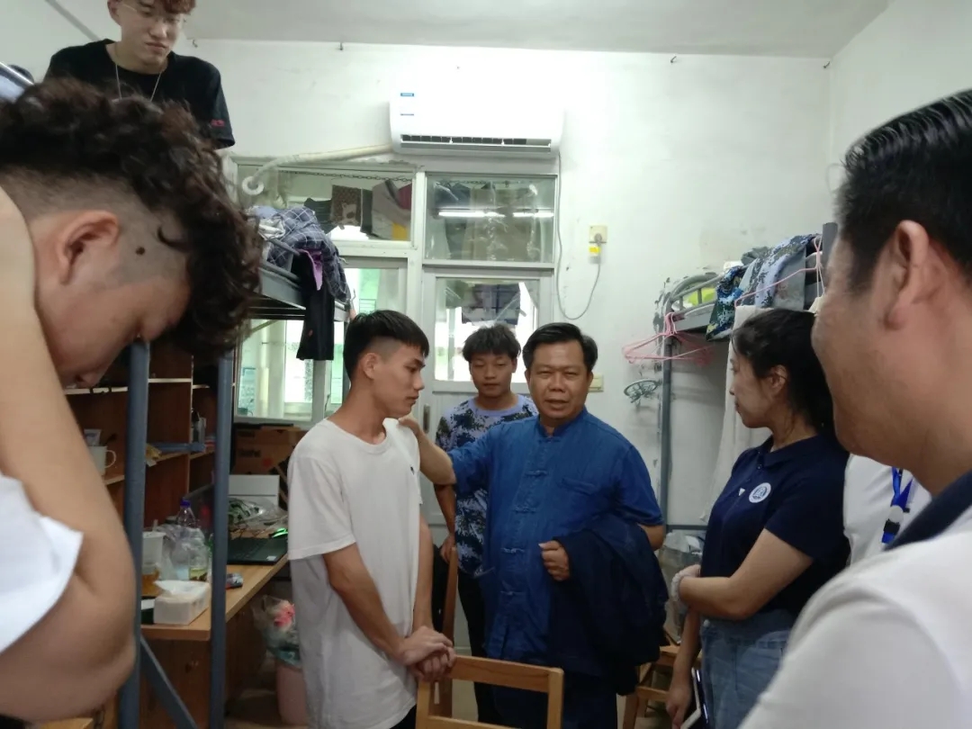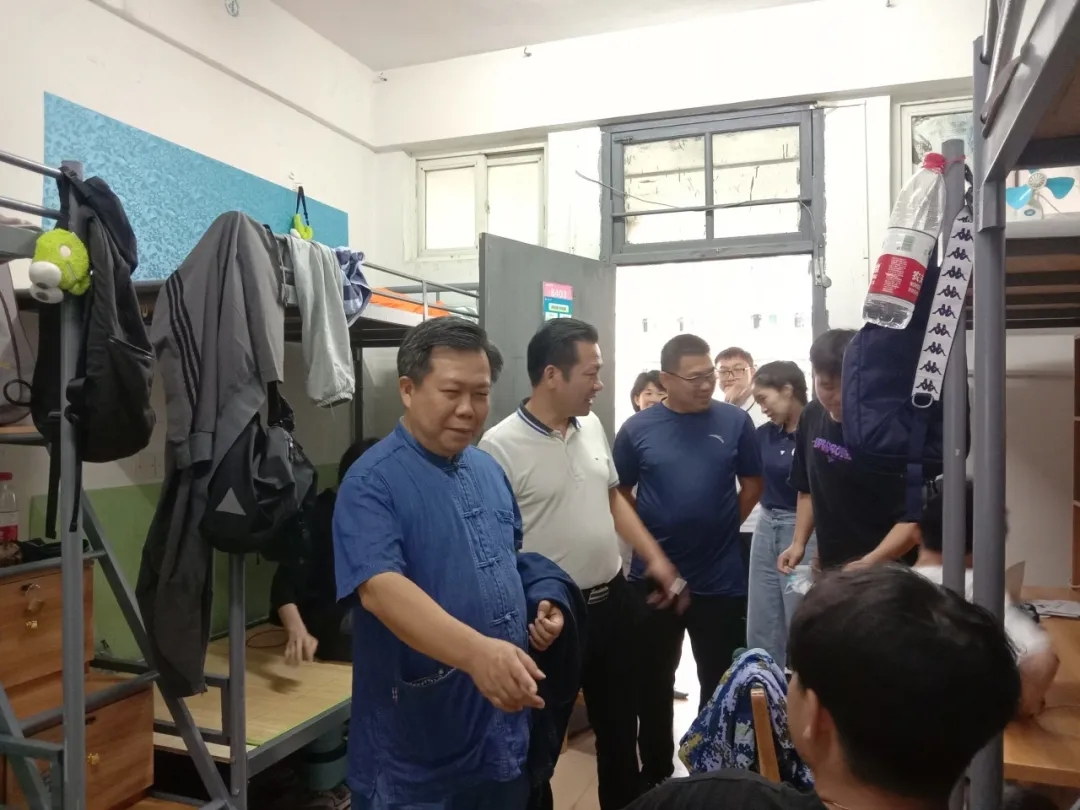 在走访宿舍过程中,许院长与曹书记向同学们简要介绍了学院特色以及接下来的日程安排,并对检查过程中发现的宿舍问题及时沟通处理。