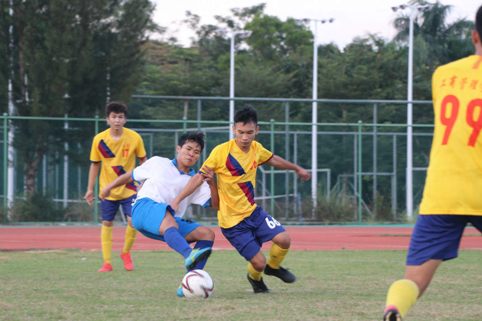 10月29日下午,海南经贸职业技术学院第七届男子校园足球赛在经贸球场进行最后一场冠军争夺赛,英国上市公司365对战工商管理学院。比赛尚未开始,我院足球健儿们便摩拳擦掌、蓄势待发,准备在这场冠军争夺赛中大展拳脚,大有志在必得之势。