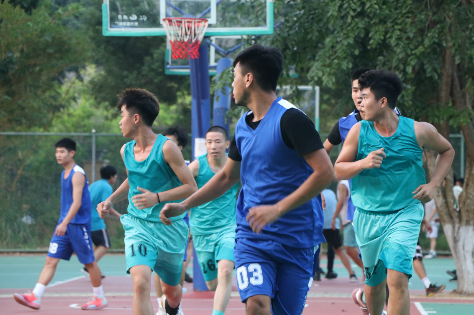 裁判员和运动员宣誓后,开幕式结束,“脊梁杯”新生篮球赛第一场比赛正式打响。