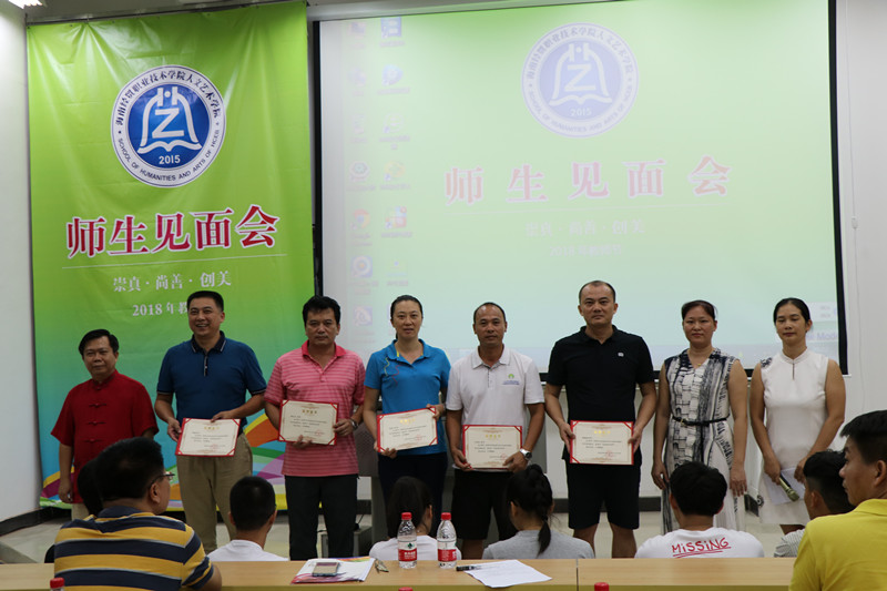 会议还表彰了2017-2018学年度我院优秀指导教师并颁发证书。优秀指导教师代表张翼展、优秀毕业生马文涛、新生代表邝嘉雨分别在会上作了发言。