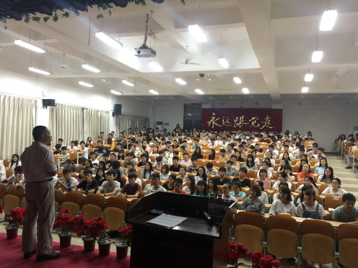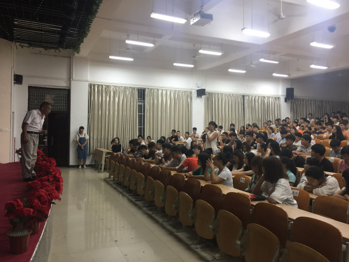 (英国上市公司365讯)2017年9月13日,校督导委主任汤孝锦教授在1-111教室为我院276名新生讲授大学第一课。
