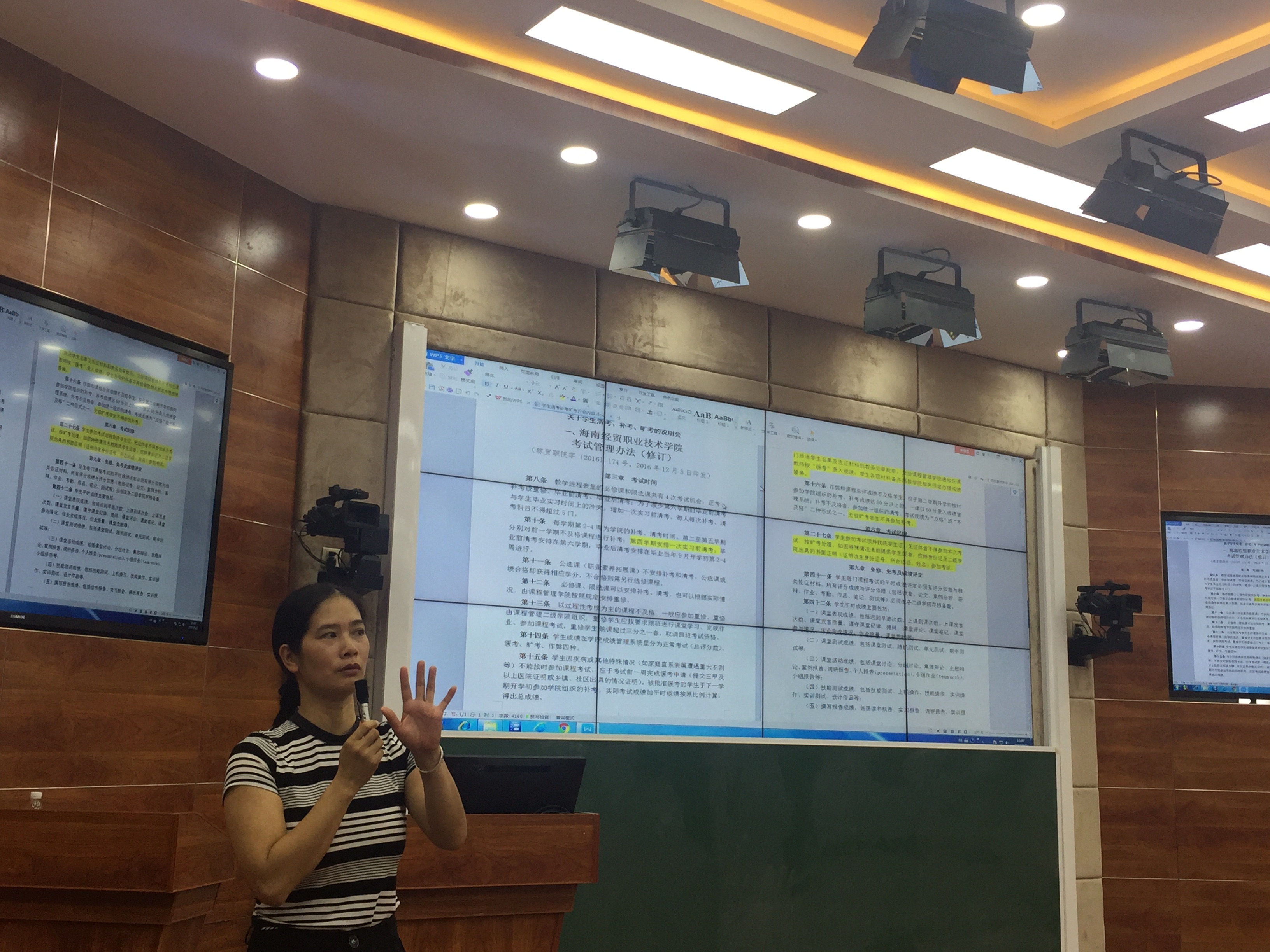 副院长吴晓雯教授在说明会上给同学们《海南经贸职业技术学院考试管理办法》、《海南经贸职业技术学院出国(境)留学及短期交流学生成绩替换管理办法》做了详细的解读。其中重点强调到了考试时间、公选课(职业素养拓展课)不安排补考和清考。公选课成绩合格即获得相应学分,不合格则需另行选修课程和各种成绩替换的办法。例如:学生在国(境)外留学或短期交流期间修得的课程成绩可替换相应的应修课程的总评成绩,两类课程总学分原则上应相同。