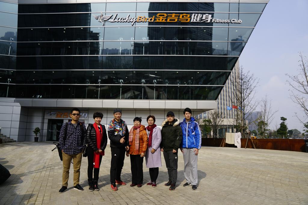 (在13体管毕业生陈有超高瑞翔单位南京金吉鸟健身中心调研)