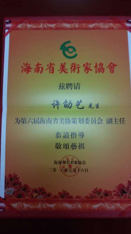 陈茂叶主席在成立大会上指出:为了海南省美协的发展需要,强调了成立策划、综合两个艺委会的意义,对两个艺委会今后的发展给予了厚望,宣布海南省美术家协会策划委员会和综合委员会成立,并向新担任策划委员会和综合艺委会主任和副主任的同志颁发了聘任证书(当选者均为我省行业内领军人物、知名专家及高校学者型教授),我院许劭艺书记凭借个人的资深艺术造诣及业内影响光荣当选策划委员会副主任。