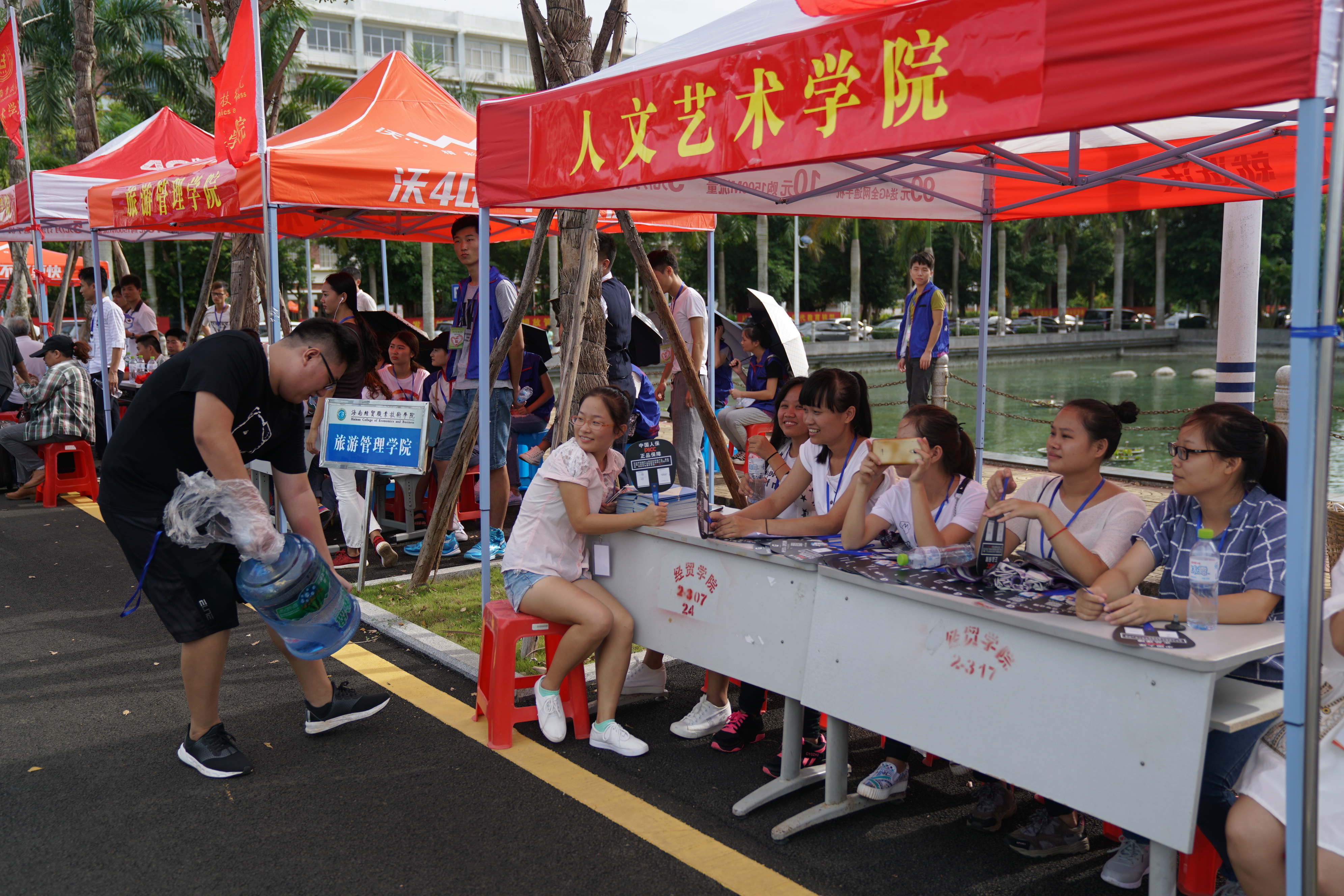 在现场,我们也经常看见一个身穿中式复古服装的身影穿梭在繁忙的现场,这身影倒给平凡而热闹的迎新画面增添了一份人文艺术的气息,通红的上衣似乎在预示着以“崇尚人文、追求艺术、全面发展”来培养人才的英国上市公司365的将来会变得越来越美好,他就是英国上市公司365院长许劭艺,他时而询问工作人员新生的报到情况,时而了解专业咨询台的老师有关情况,时而跑回办公室处理新生转专业的事情,忙得不亦乐乎。