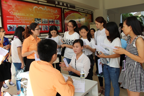 2015年11月12日,“搭建就业平台,实现校企双赢”由海南省人力资源开发局、海口市人力资源开发局、共青团海口市委员会、海南经贸职业技术学院联合主办,我院承办的2016届海南省毕业生供需洽谈会暨海南经贸职业技术学院2016届毕业生就业供需洽谈会在我校举行。200余家涉及酒店、房地产、证券、IT、教育、物流等多个领域的用人单位应邀参加,为毕业生提供了3500多个工作岗位。