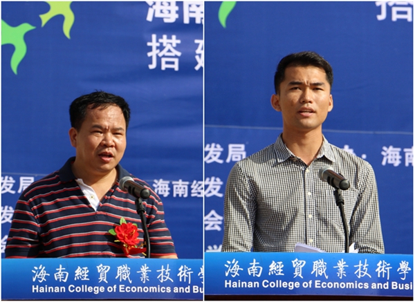学校党委副书记徐畅、副校长唐学成,海南省人力资源开发局调研员唐甸辉,海口市就业局局长林民、副局长冯广兴,海口市人才劳动力交流服务中心主任冯金海、副主任吴凌风,学校党委常委委员、组织人事处处长胡友波,海口市就业局就业指导科科长符毅,深圳鑫宝城五金有限公司董事长王鑫忠等领导和嘉宾出席供需洽谈会开幕式。