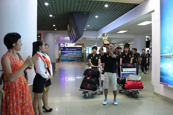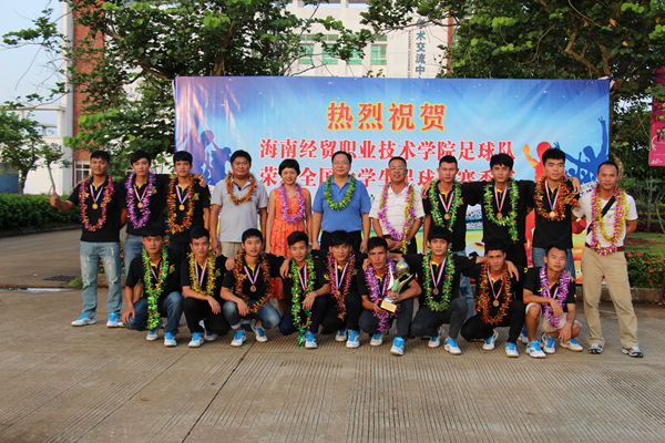 中国大学生足球联赛(高职组)总决赛于7月2日落下了帷幕。海南经贸职业技术学院作为海南省唯一一支球队,代表海南省出征中国大学生足球联赛,一举夺得全国季军奖杯。这是海南高校足球队创造的历史最好成绩,在海南校园足球历史上具有里程碑式的重要意义。7月3日,学校党委书记张继友、党委副书记徐畅亲自迎接足球健儿凯旋归来。