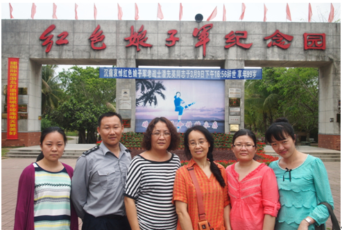 在琼海红色娘子军纪念园,负责人首先向我部教师介绍了该园的情况,并就建立实践教学基地一事双方进行了沟通,随后带领我部教师参观了该纪念园,纪念园里一幅幅珍贵的历史照片,再现了娘子军战士们为反抗封建压迫和争取男女平等,英勇杀敌,不怕牺牲,为琼崖革命立下不朽功勋的感人事迹。希望通过参观该纪念园,能让我院学生受到启发,缅怀历史,更加珍惜今天的美好生活。
