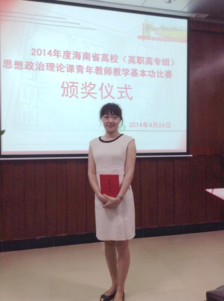 本院425讯(思政部报道)2014423—24日,由海南省教育厅主办的2014年度海南省高校思想政治理论课青年教师教学基本功比赛在海南软件职业技术学院举行,我院思政部徐立特老师在本次比赛中荣获二等奖。