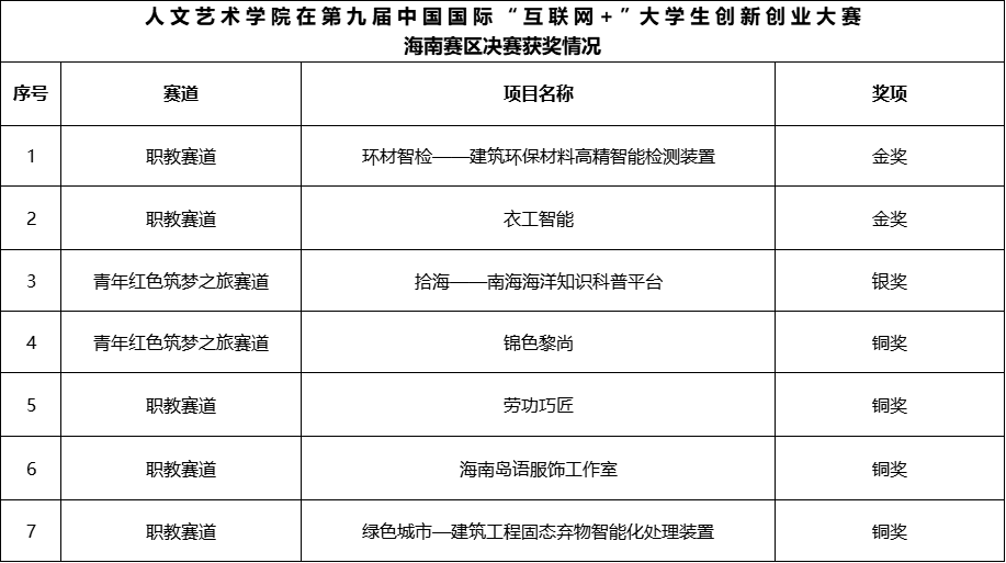 近日,由海南省教育厅主办的第九届中国国际“互联网+”大学生创新创业大赛海南赛区竞赛颁奖典礼在海南大学举行。经过前期项目现场展示与路演答辩等环节激烈角逐,海南经贸职业技术学院取得3金7银5铜的佳绩,其中英国上市公司365取得2金1银4铜的优异成绩。其中,我院项目指导教师徐浩、王鸿燕、胡晓、符代芸、谢二兰等老师被评为“优秀指导教师”。