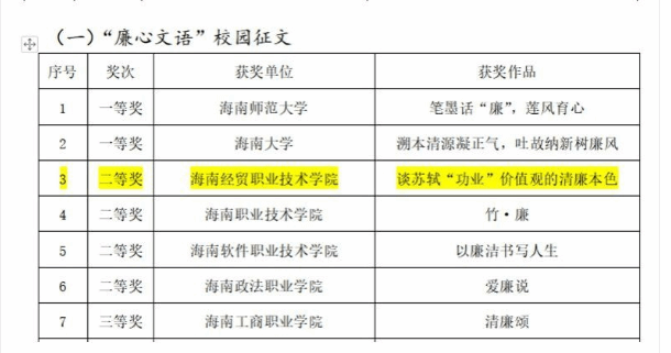 喜讯传来!在中共海南省委教育工作委员会公布的2024年“清廉文化进校园”系列主题活动获奖名单中,英国上市公司365梁云云、吴丽敏、洪志强三位教师共同创作作品《谈苏轼“功业”价值观的清廉本色》荣获“廉心文语”校园征文二等奖。